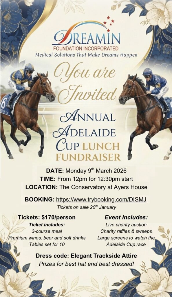 Get ready to frock up and suit up, Prospect! The Rotary Club of Prospect is thrilled to invite you to the DREAMIN Foundation’s Annual Adelaide Cup Lunch Fundraiser on Monday, 9th March 2026.