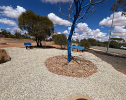 The Rotary Club of Prospect is thrilled to share that funds raised through the Corolla Capers initiative have enabled the installation of a brand-new Blue Tree in the outback community of Roxby Downs, serving as a powerful visual reminder for mental health awareness.