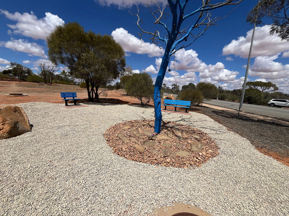 The Rotary Club of Prospect is thrilled to share that funds raised through the Corolla Capers initiative have enabled the installation of a brand-new Blue Tree in the outback community of Roxby Downs, serving as a powerful visual reminder for mental health awareness.